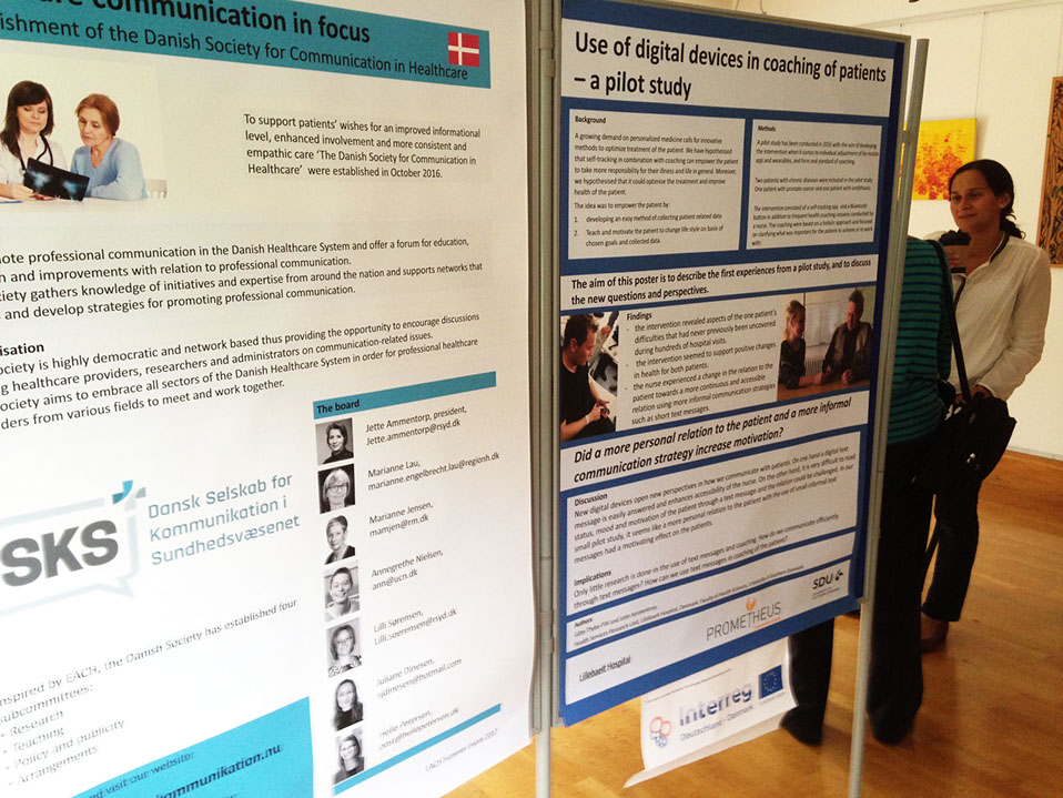 Mrs Gitte Thybo Pihl from Sygehus Lillebaelt, one of the Danish partners in the PROMETHEUS project, attended an international workshop in London organized by the European Association for Communication in Health systems (EACH). She had been invited to present a poster developed in the project: “The use of digital devices in the coaching of patients – a pilot study.” Among others, the study explored the question of more personal relations between doctors and patients and a less formal discourse. It wanted to find out whether these changes could improve patients’ motivation and ability to engage in a more active role.